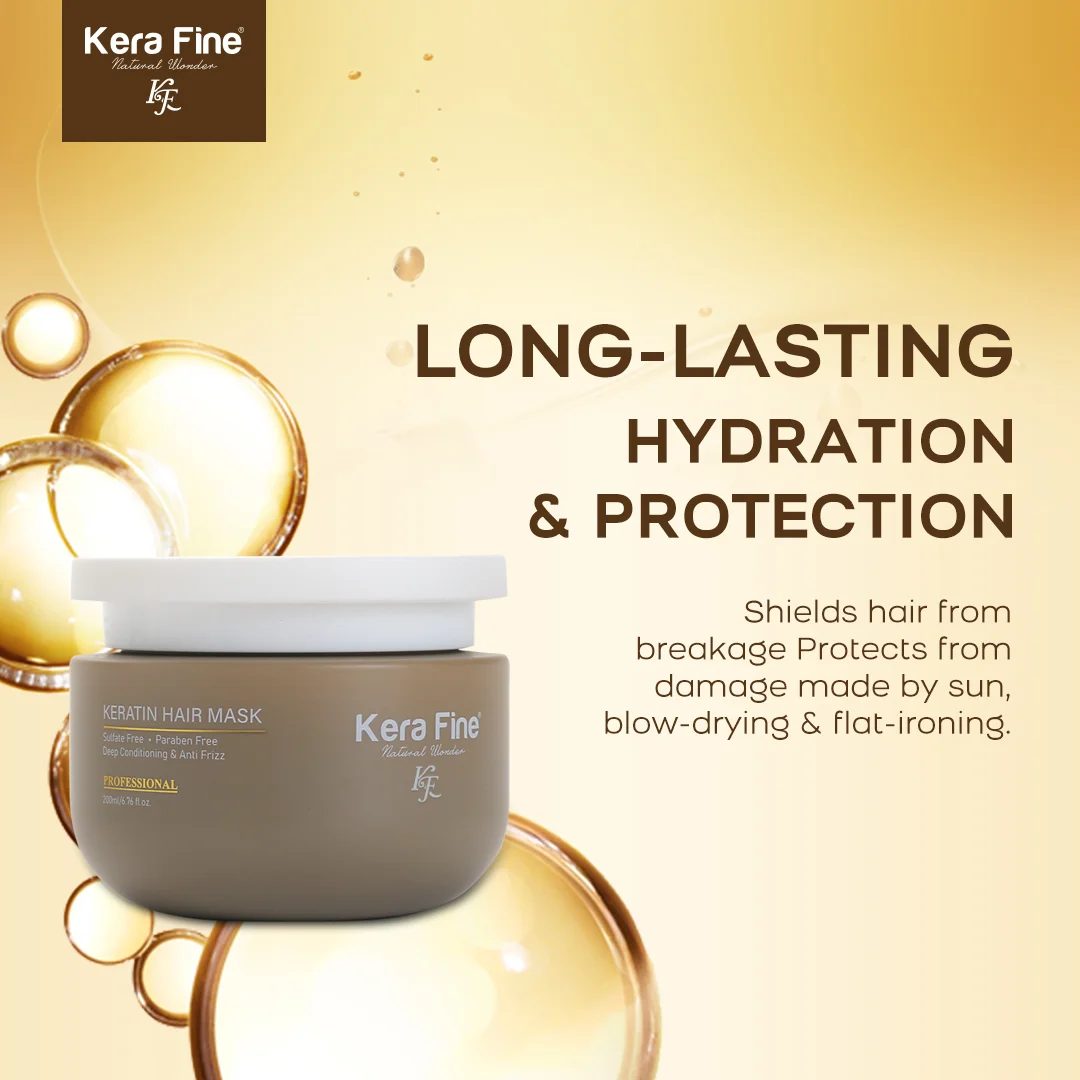 Keratin hair mask treatment restores this structural protein, smooths the hair cuticle, and strengthens the hair. Unlike regular conditioners, a deep keratin mask goes deeper than a normal conditioner to provide long-lasting nourishment, repair and protection – making it an essential weekly treatment for beautiful hair.